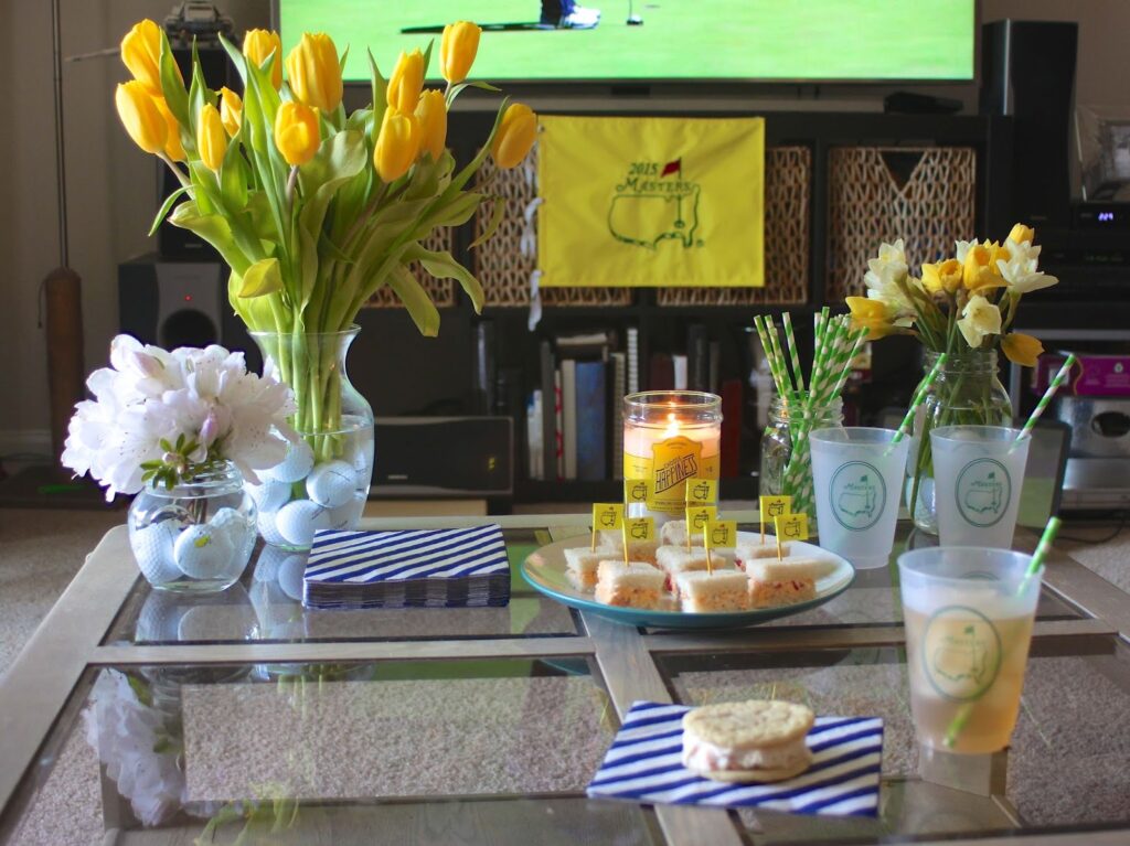 You don’t need elaborate decorations to capture the spirit of the Masters. Stick with a classic green, white, and yellow color palette to mirror the tournament’s iconic look. Green table runners, napkins, or placemats instantly set the tone. Adding fresh flowers or faux greenery can also help bring an outdoor, springtime feel indoors.